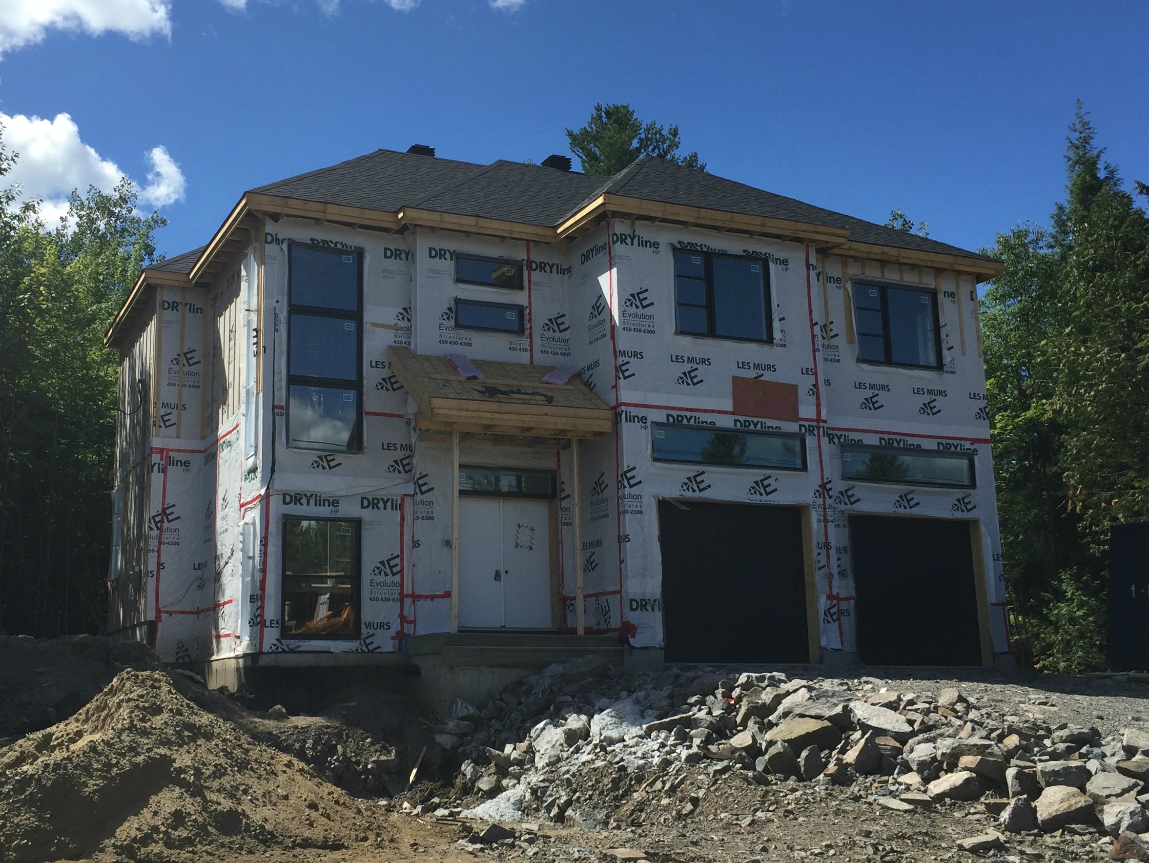 La construction d’une charpente d’un agrandissement avec garage double.