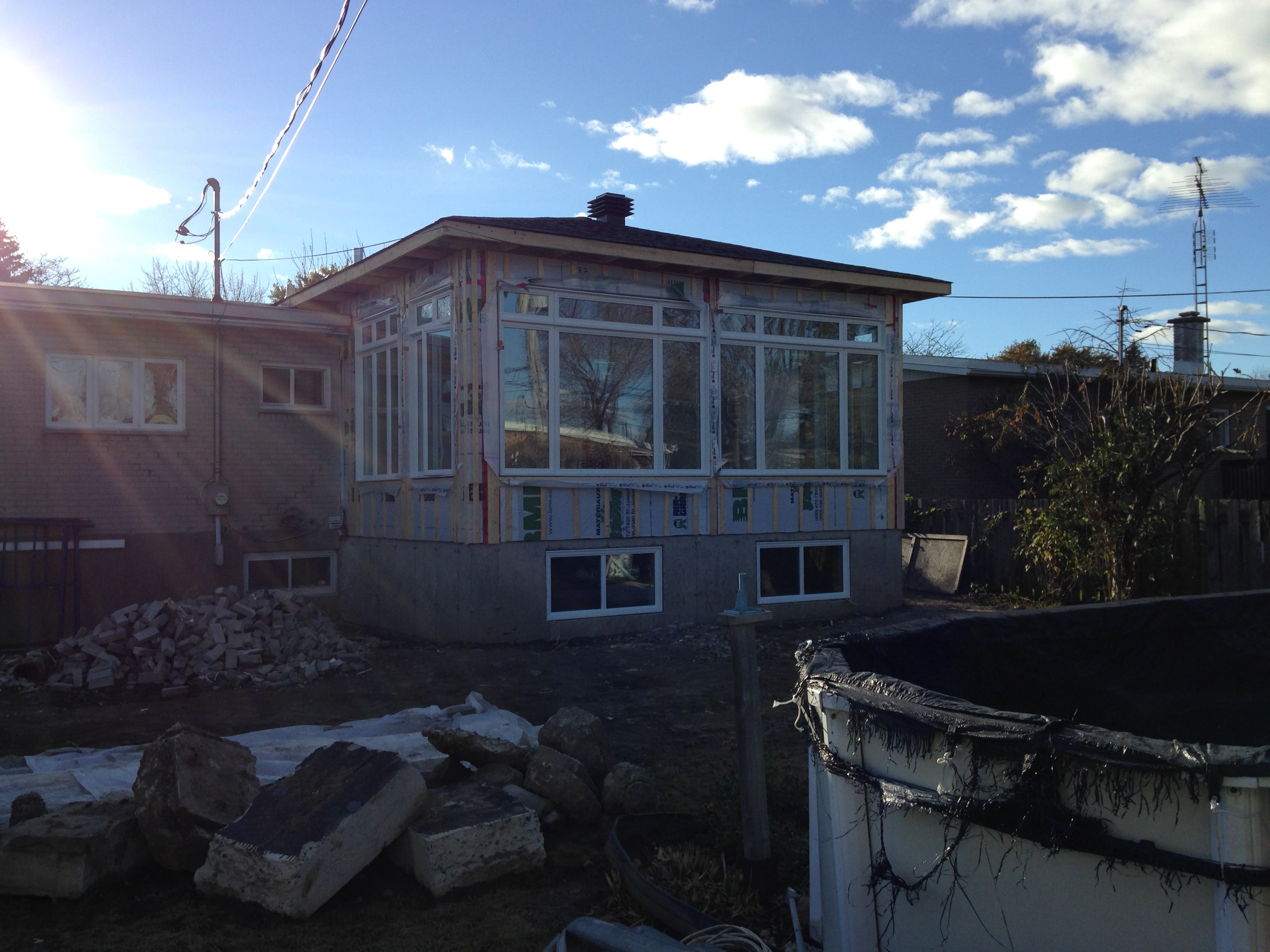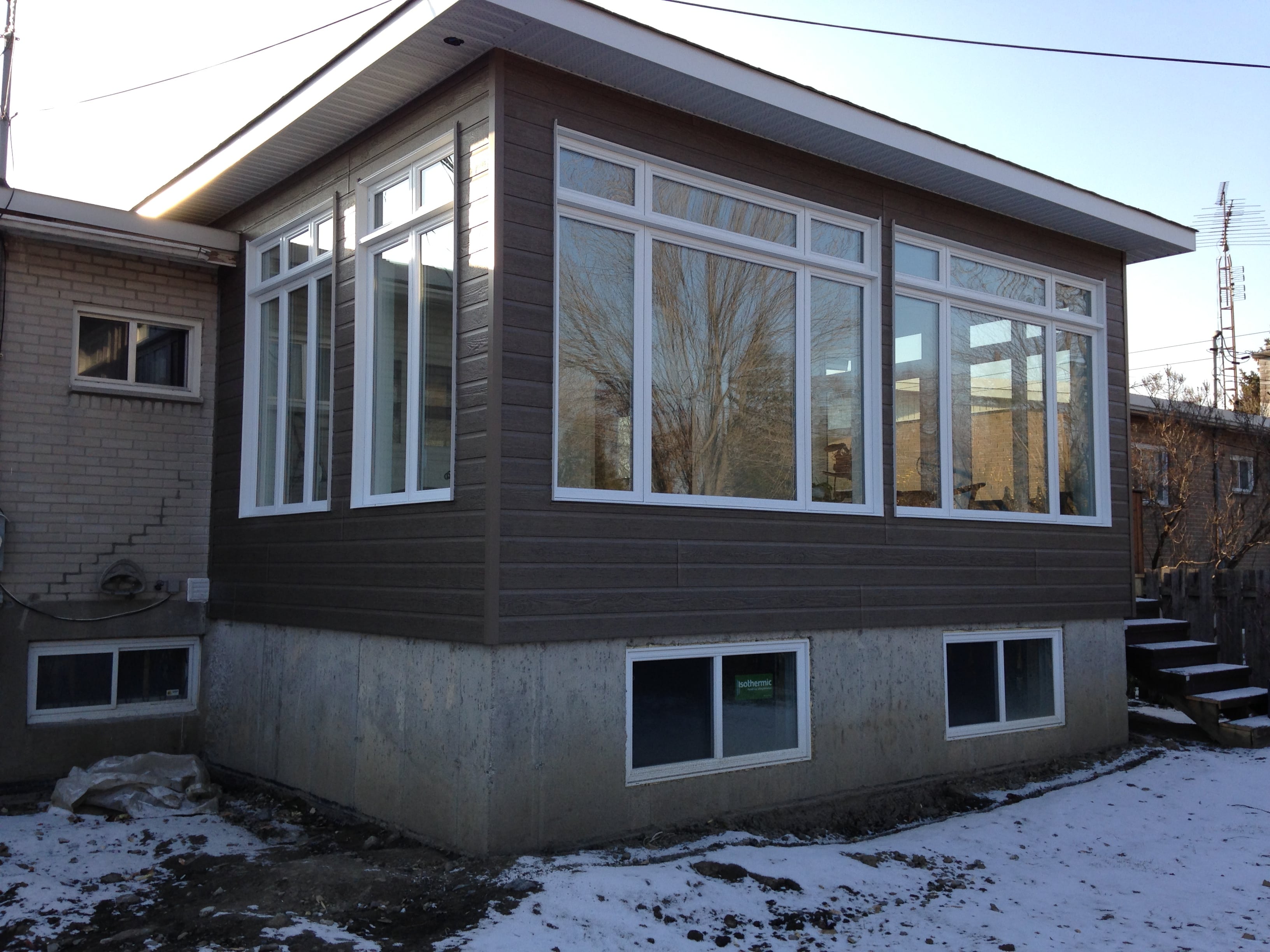 Agrandissement sur fondation Un agrandissement avec une fenestration optimale, réalisé en 5 semaines Précédent Suivant