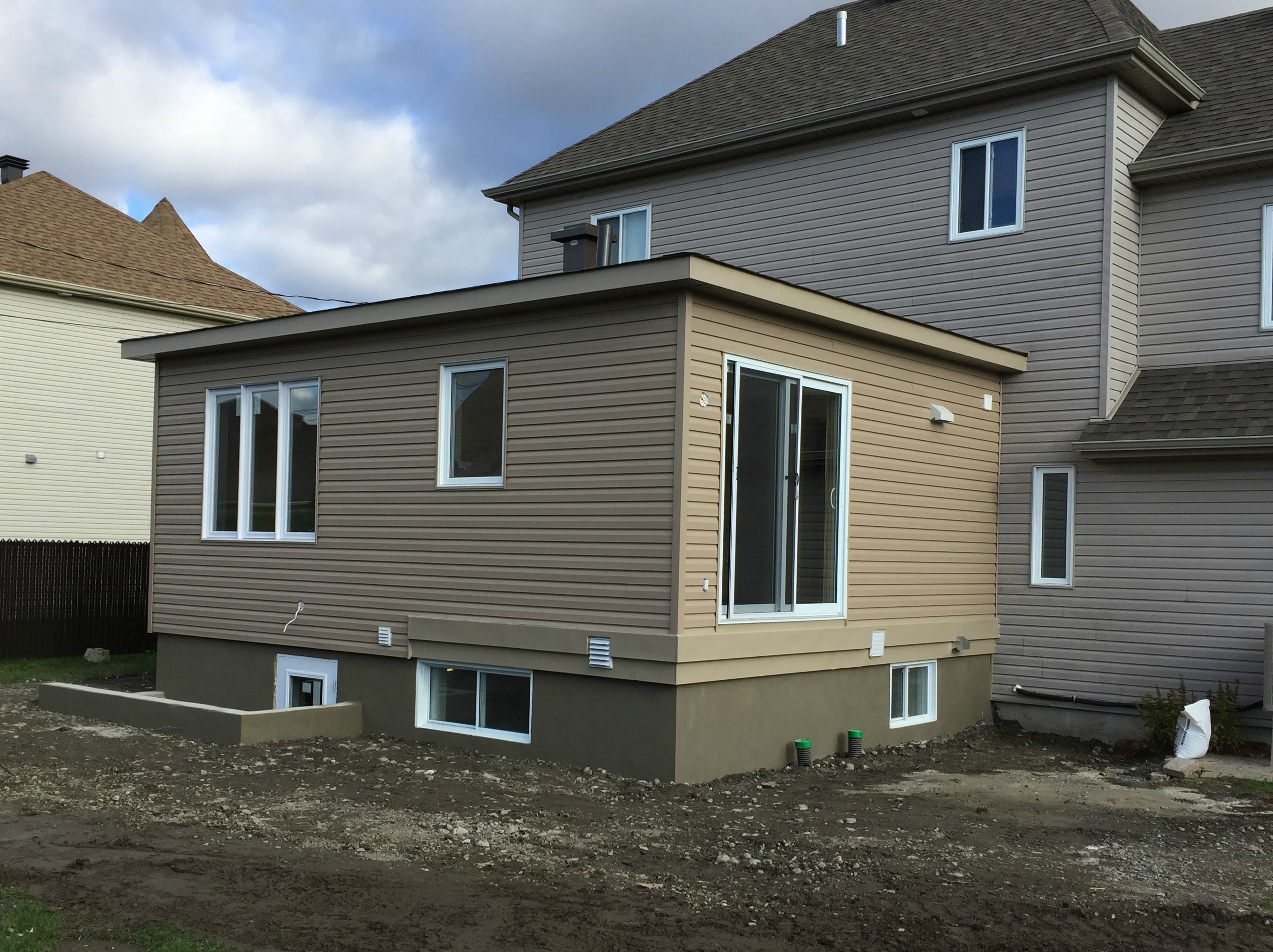 Agrandissement et ajout d'un logement Le rez-de-chaussée à été agrandi pour permettre une nouvelle configuration de la cuisine et de la salle à manger. Un logement au sous-sol a été crée. Précédent Suivant