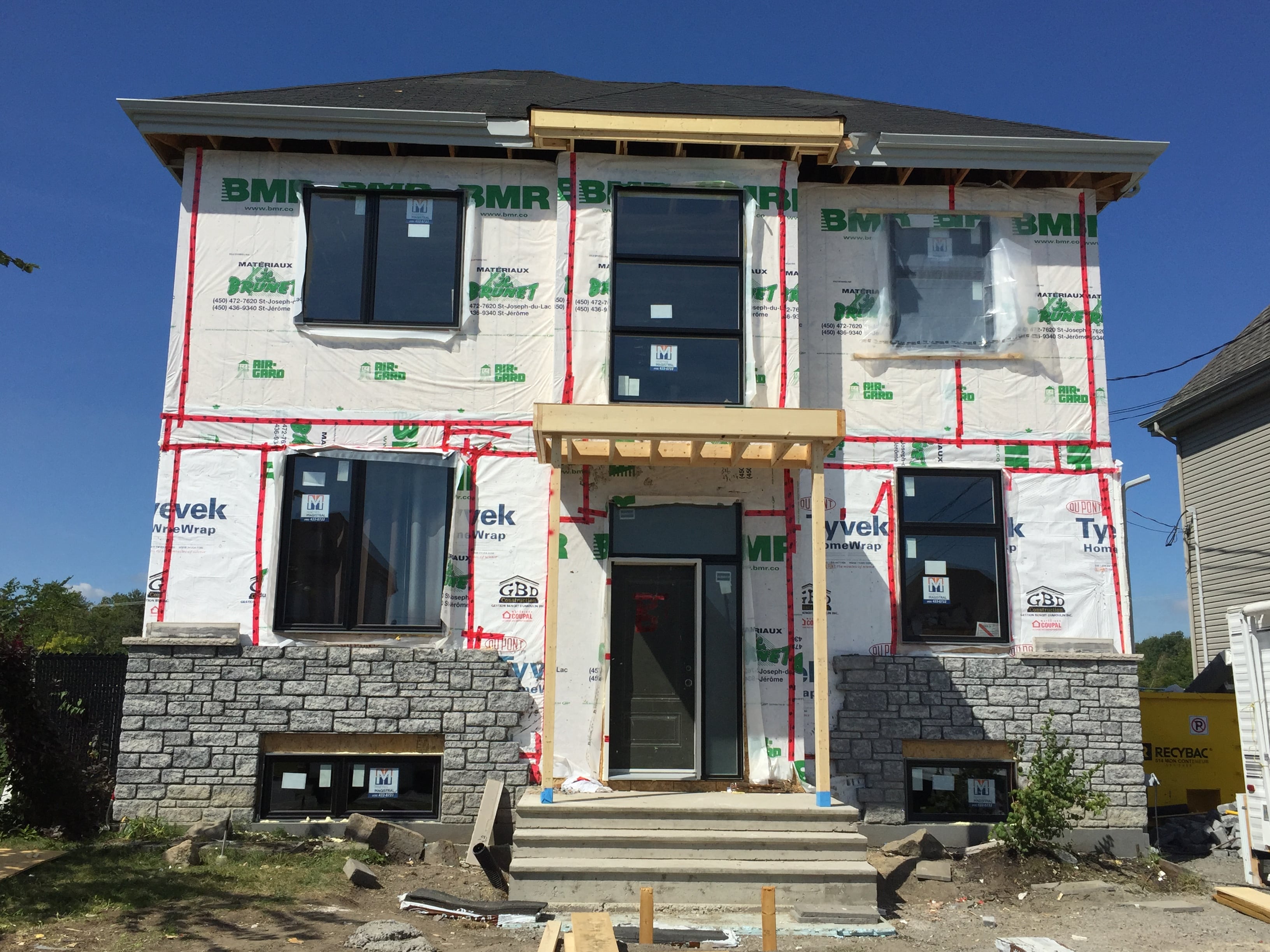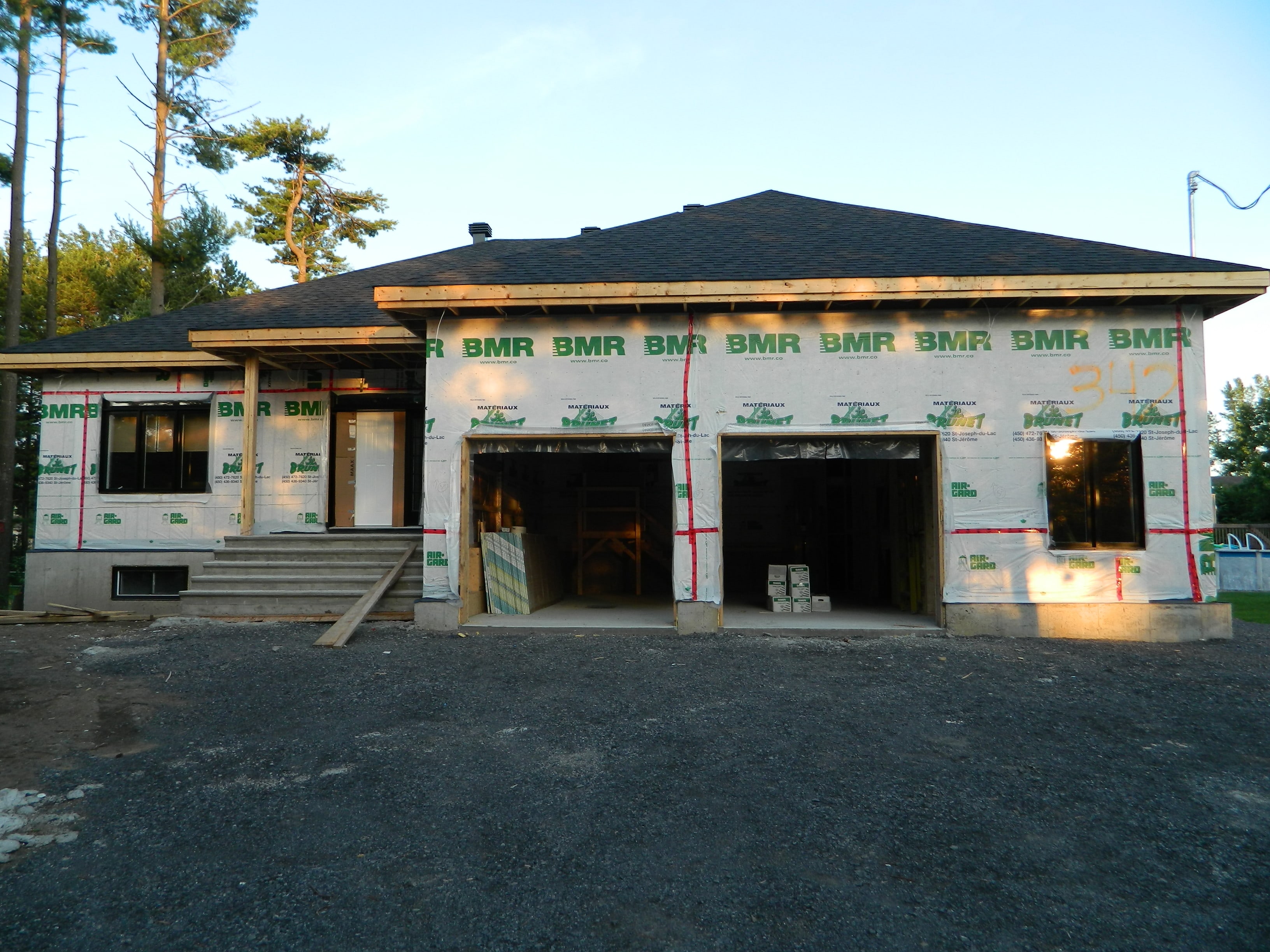 La charpente d'un étage ajouté à une maison plein pied, pour ainsi créer un cottage contemporain.