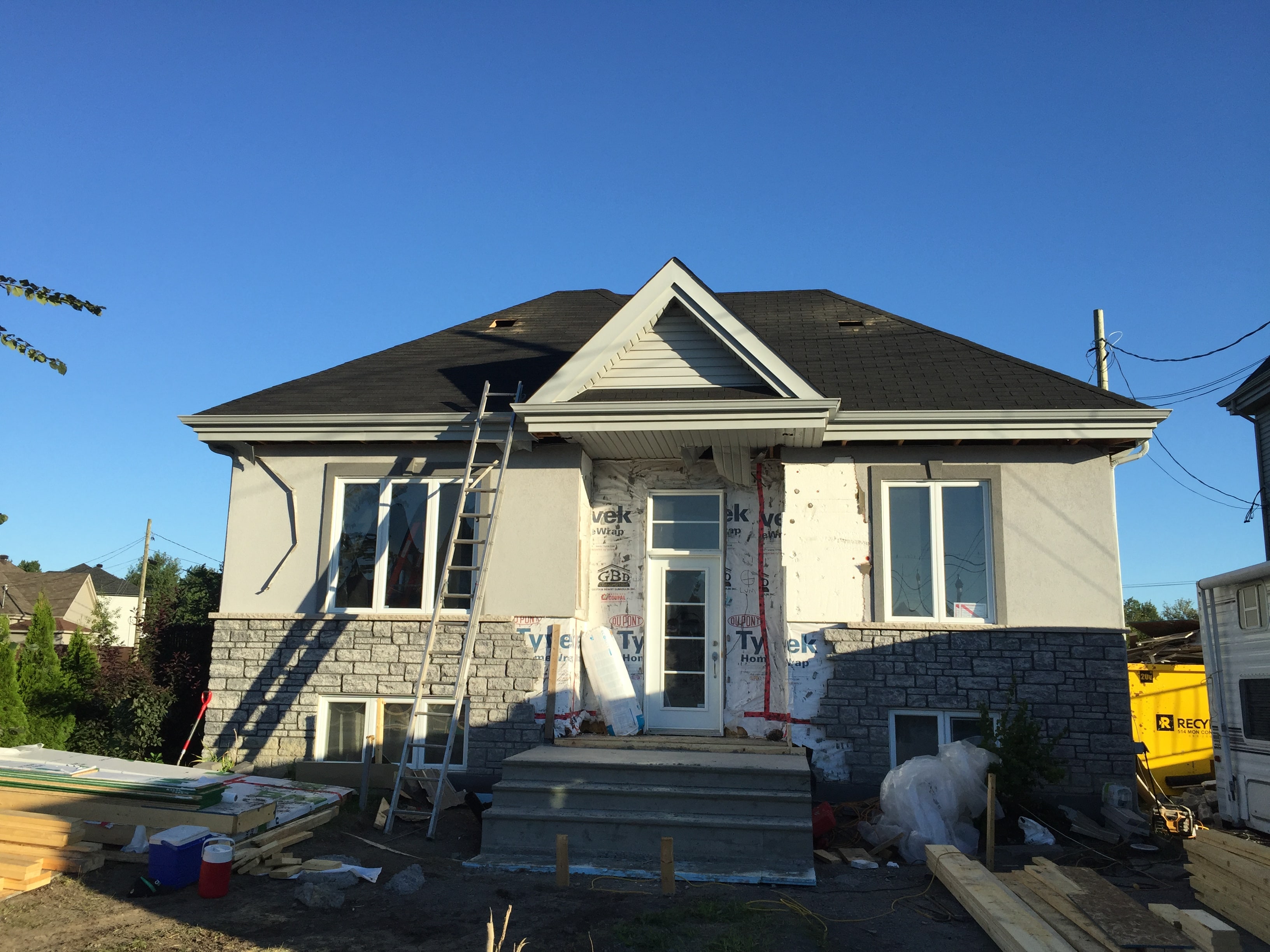 Charpente d'un ajout d'étage La charpente d'un étage ajouté à une maison plein pied, pour ainsi créer un cottage contemporain. Suivant