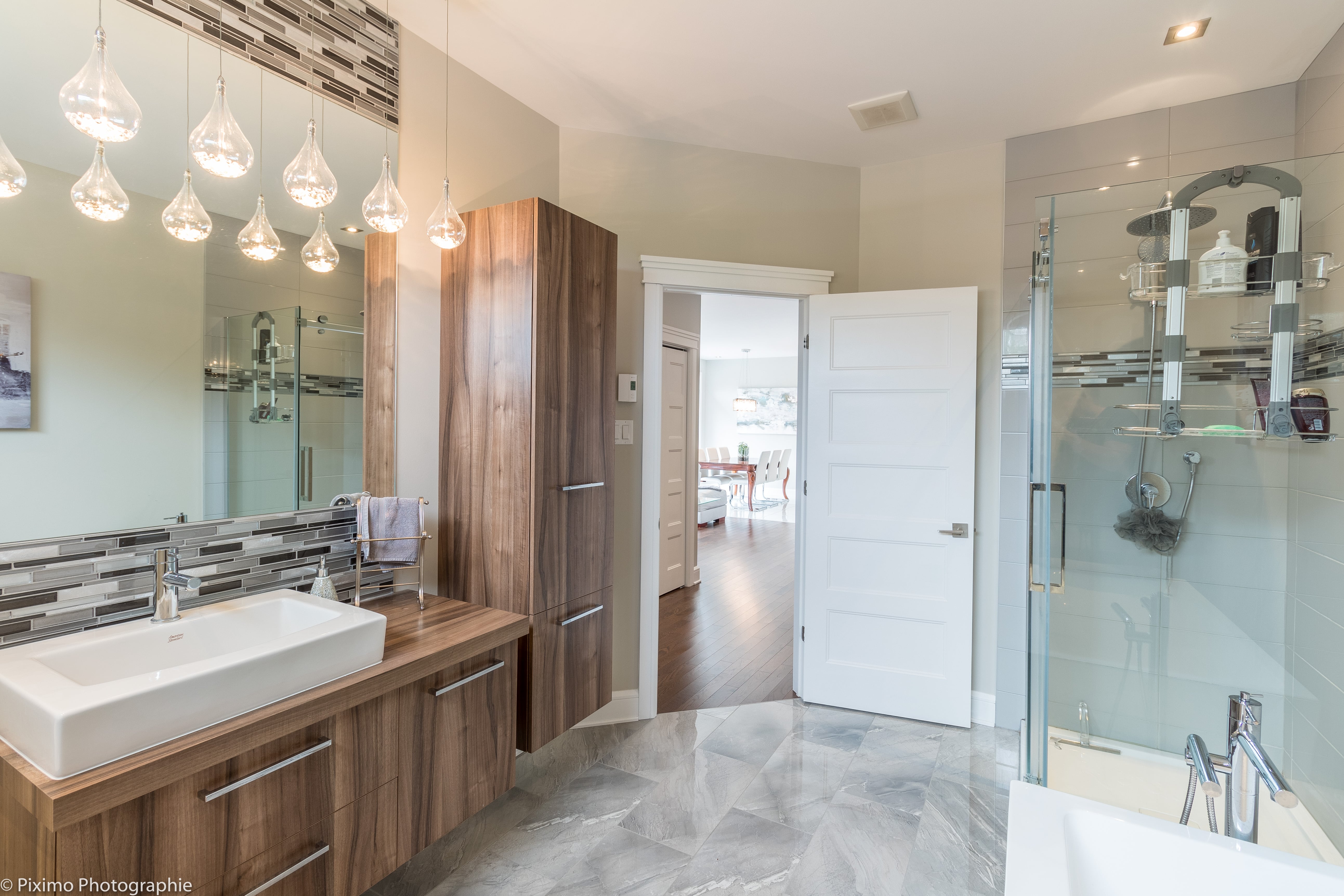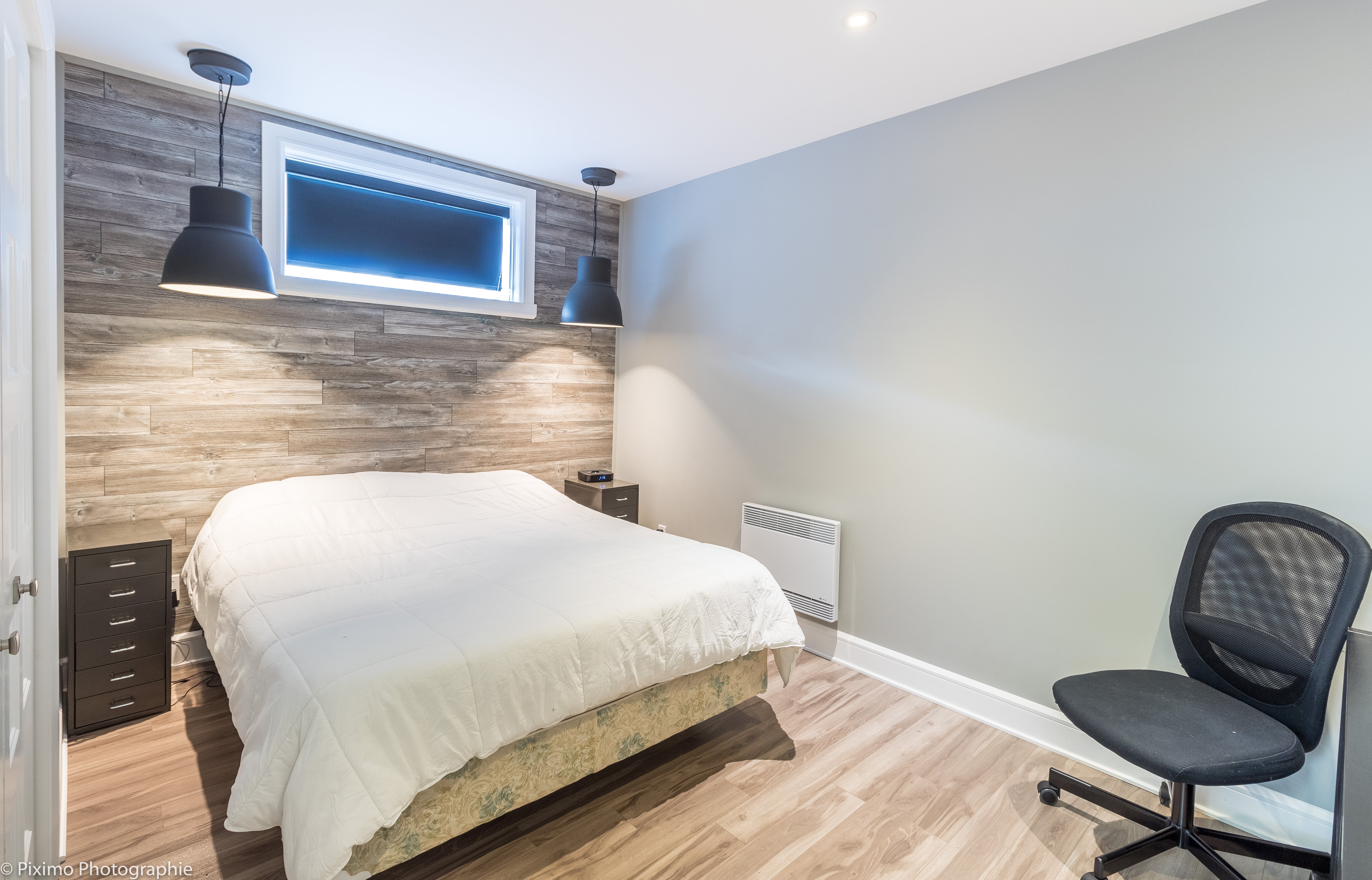 Maison plein pied clé en main Ce plein pied a trois chambres à coucher au rez-de-chaussée et une supplémentaire au sous-sol. De plus un bachelor a été aménagé au sous-sol. Précédent Suivant